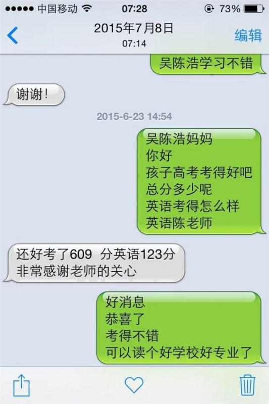 2015年九江三中 学霸吴陈浩高考成绩 该生英语以前比较薄弱