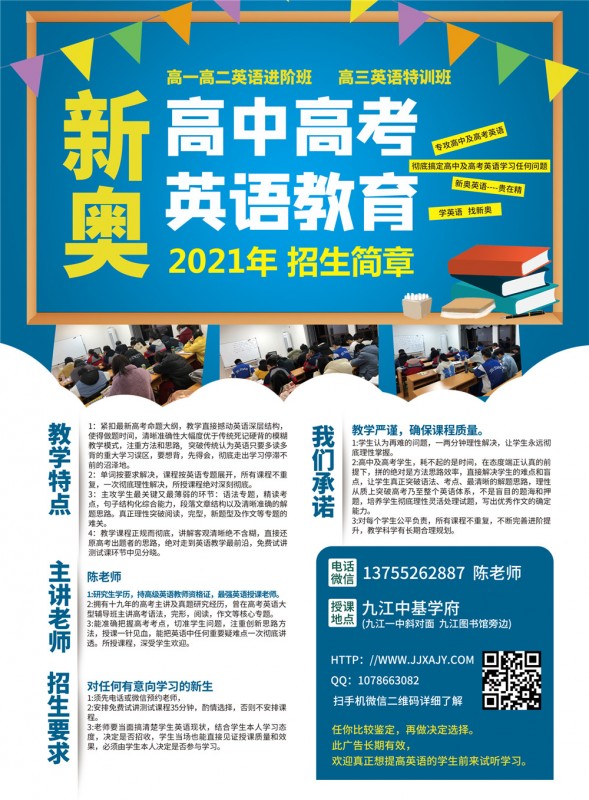 九江新奥英语教育位于美丽的城市九江市,自办学以来,很多学生在这里辅导培训,为国内重点大学和国外部分重点院校输送了大量合格人才,得到社会各界的关注和认可,深受学生和家长的信赖和好评。