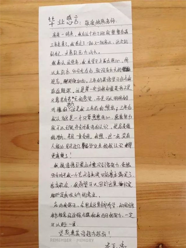 毕业生毕业感言,给予辅导班和老师学术高度评价。