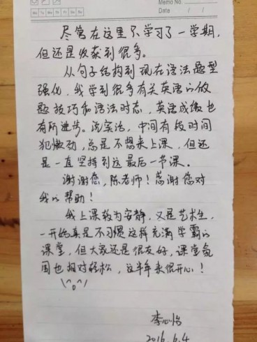 毕业生毕业感言,给予辅导班和老师学术高度评价。