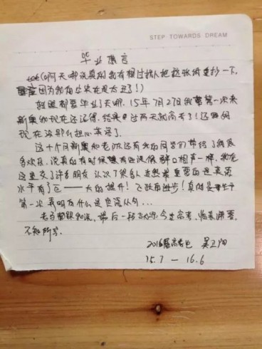 毕业生毕业感言,给予辅导班和老师学术高度评价。